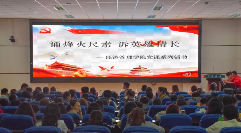 在贺兰山校区文荟楼东报告厅举办党课系列活动——“诵烽火尺素,诉英雄情长”。