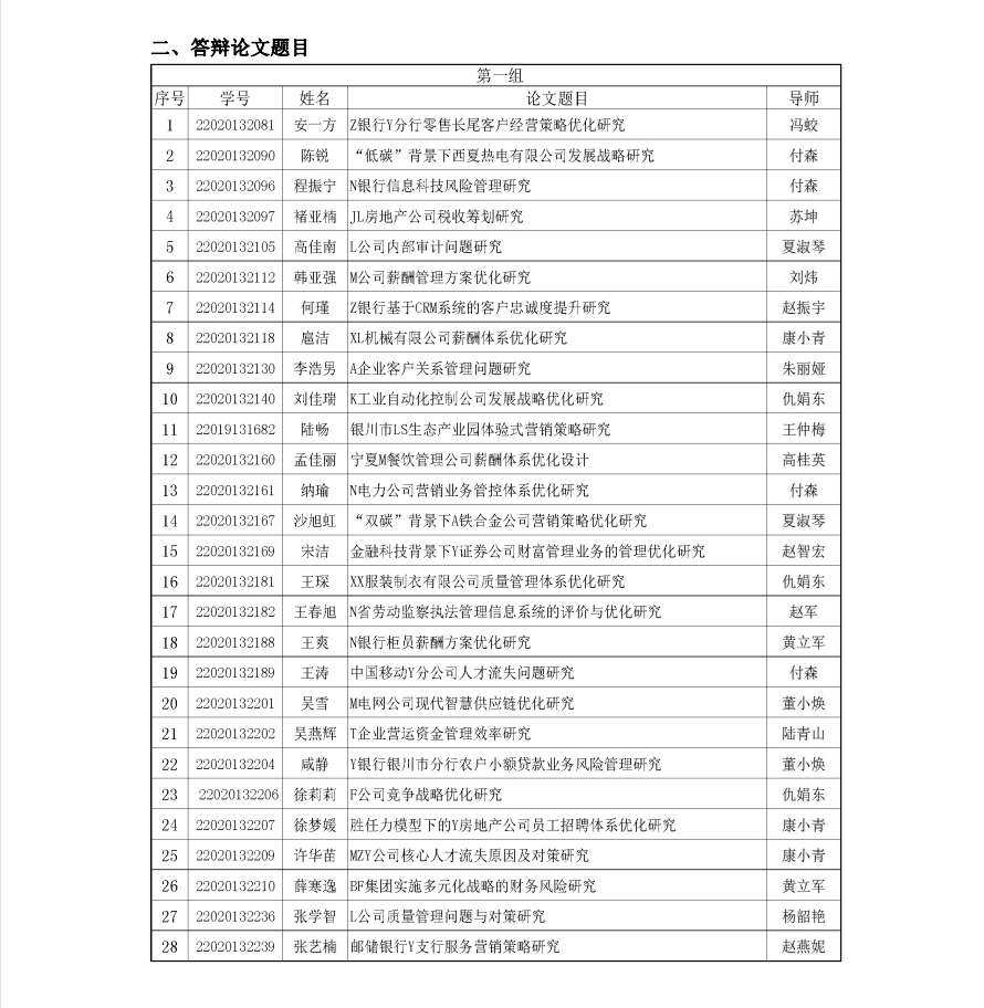 2023届工商管理硕士(MBA)学位论文答辩 (第一组)