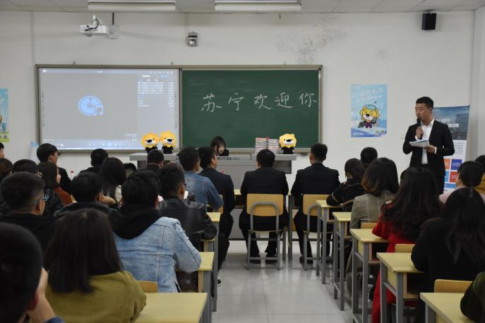 招聘会宣讲人从企业简介,本次计划的招聘岗位,薪资待遇以及入职后的发展路径四个方面向在场应届毕业生进行了详细的介绍。创立于1990年的苏宁控股集团,一直秉承“引领产业生态、共创品质生活”的企业使命,不断拓展产业经营,形成苏宁易购、苏宁物流等八大产业板块协同发展的格局,并于2017年以4129.5亿元的规模位居中国民营企业500强第二名!1200工程是苏宁人才培养的品牌工程,基于这个计划,一批批优秀的大学生先后加入苏宁,为苏宁之后的快速发展积蓄了力量,该计划在苏宁转型变革、多元发展的道路上,扮演着重要的角色!在招聘岗位方面,针对91自拍