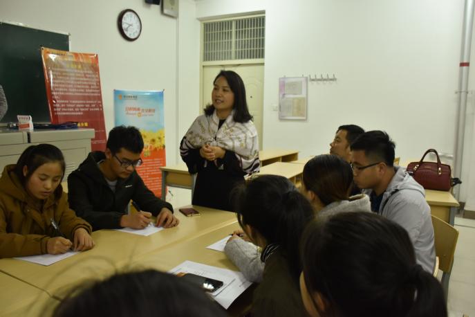 贺兰山校区文荟楼404室顺利召开,本次宣讲会由阳光综合金融集团市场总监张起源主讲,区域经理王天祥、主管邹泽鹏、营销经理杨红艳等人陪同宣讲。