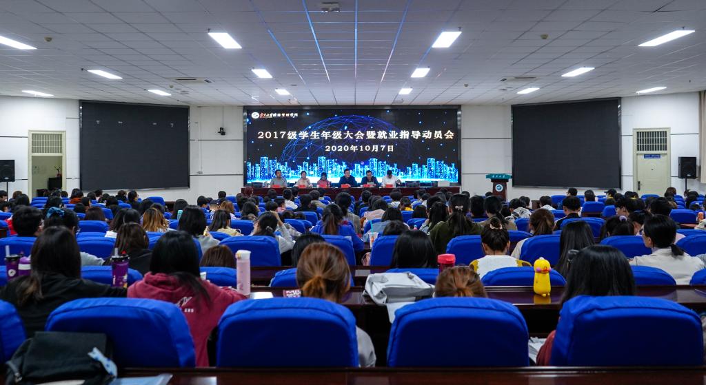 于文荟楼一楼东报告厅召开2017级学生年级大会暨就业指导动员会。院党委副书记程胜利,新疆学生工作坊特派教师巴塔,学生工作办公室负责人何韶华,学生工作办公室辅导员艾萨·阿尤普、姚硕、孙文元参加会议。会议由姚硕主持。