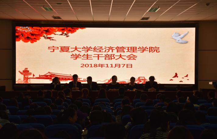 全体学生干部大会,院团委书记黄旭兴、学生会秘书长王嘉豫以及各年级学生干部参加此次会议。会议由学生会主席马小虎主持。