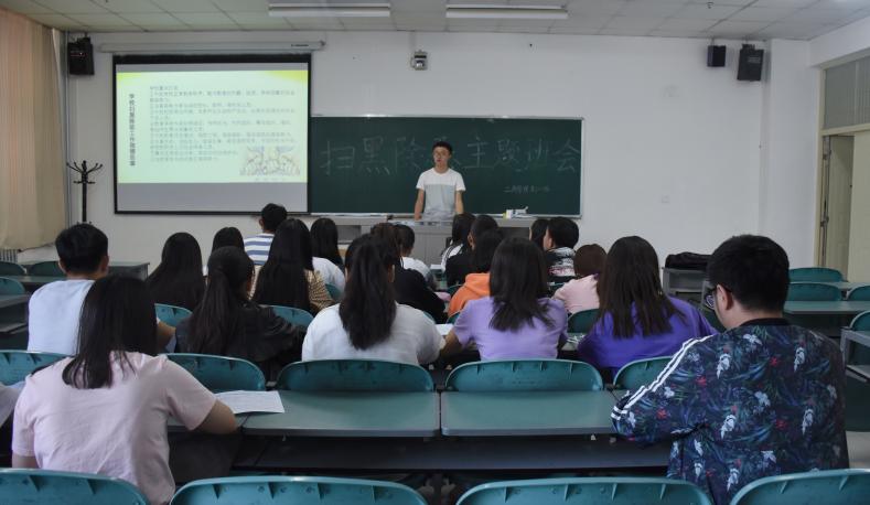 于5月22日下午在贺兰山校区文荟楼组织2018级各班开展扫黑除恶主题班会。