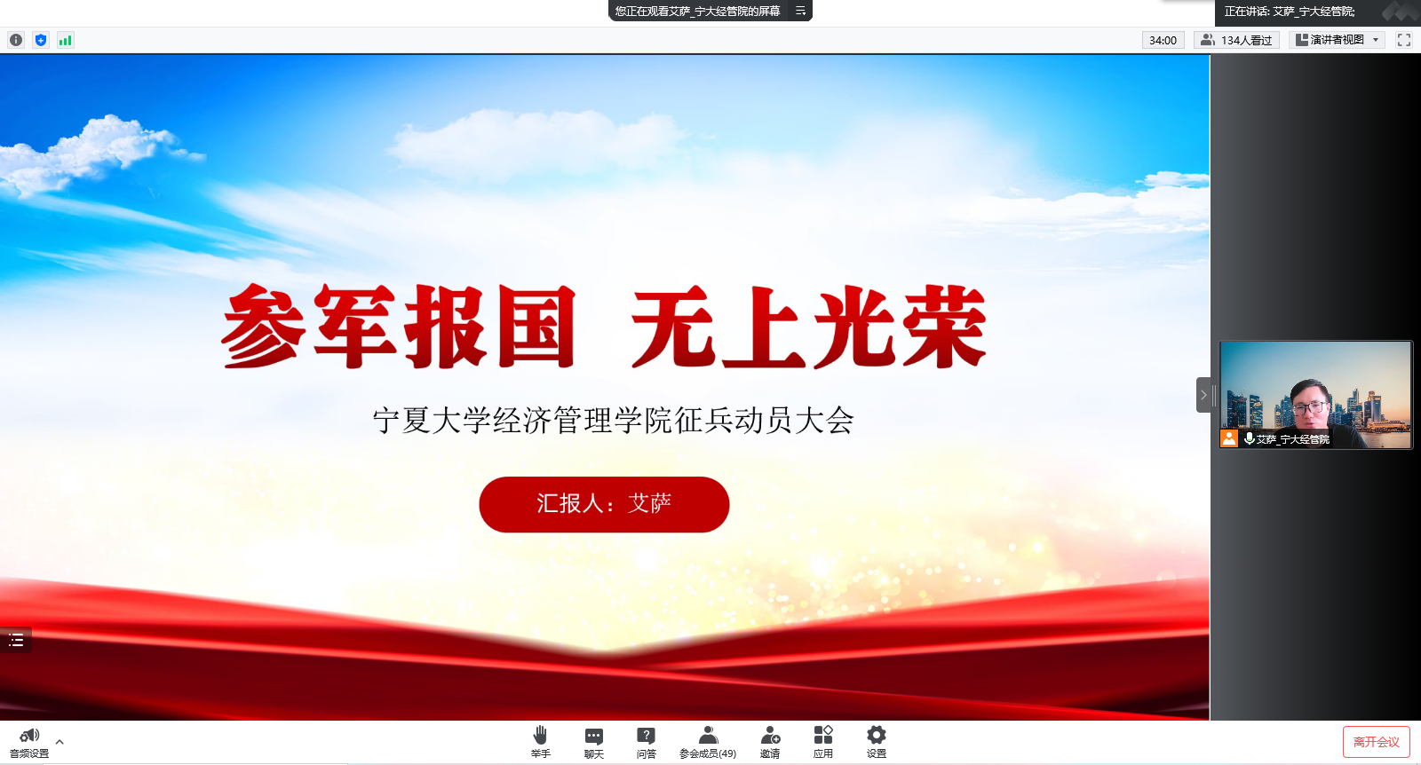 通过线上召开了毕业生征兵动员大会。学院2022届毕业生参加动员会,由学院学生工作办公室负责人艾萨·阿尤普进行征兵动员宣讲。