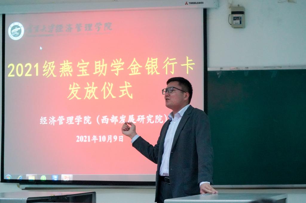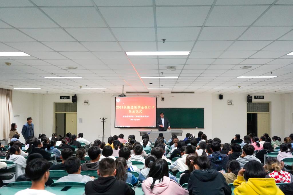 在文荟楼130会议室举行了2021级燕宝奖学金银行卡发放仪式,学生工作办公室辅导员艾萨•阿尤普、禹文杰及2021级全体本科生参加了仪式。仪式由禹文杰主持。