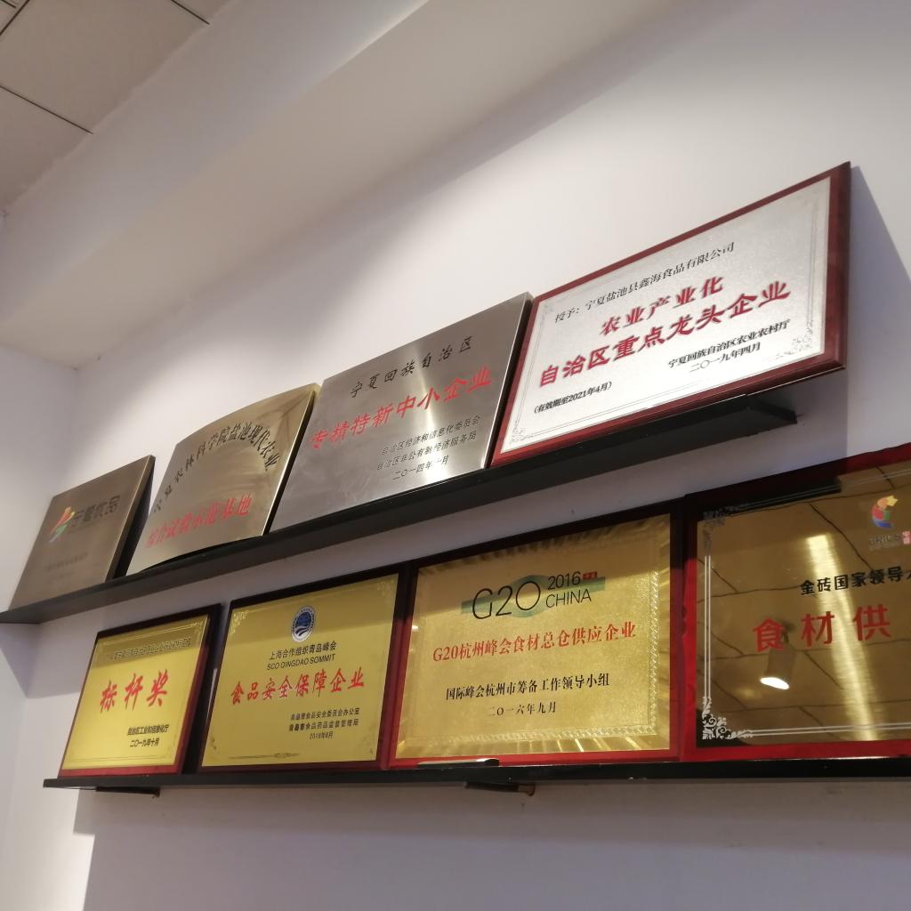 本次参观的企业是宁夏盐池县鑫海食品有限公司。该企业是宁夏本土著名的羊肉品牌,还获得了“中国十大羊肉品牌”的认证以及“自治区龙头企业”、“自治区农业高新技术产业”、“全区脱贫攻坚先进集体”、“国家高新技术企业”、“宁夏中小企业50强”、“宁夏著名商标”、“百姓喜爱商标”等大小几十项荣誉认证。至今,宁鑫滩羊已经完成“四登国宴”,还曾作为2016年G20杭州峰会食材总仓供应企业将宁夏滩羊送上了国际饭桌。