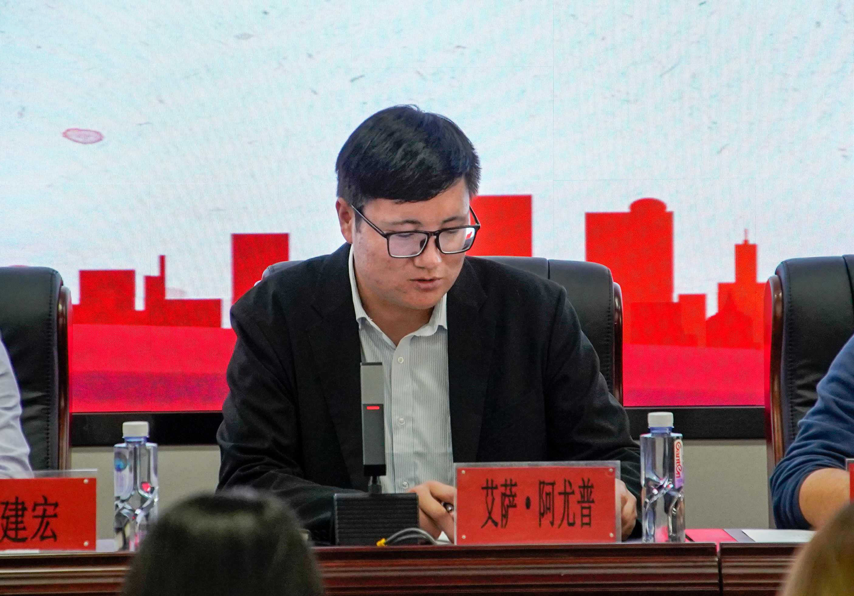 (西部发展研究院)党委副书记马建宏、就业创业服务中心副秘书长艾萨·阿尤普、学院党建秘书姚硕、团委副书记孙文元、学生会秘书长禹文杰,学院团委、学生会、传媒中心主席团成员,学院就业创业服务中心全体工作人员参加此次会议。会议由艾萨主持。