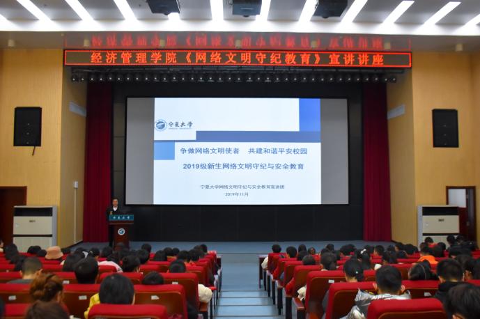 党委学工部副部长、学生处副处长、网络文明守纪与安全教育宣讲团成员马瑜老师于贺兰山校区科技楼一楼报告厅为91自拍