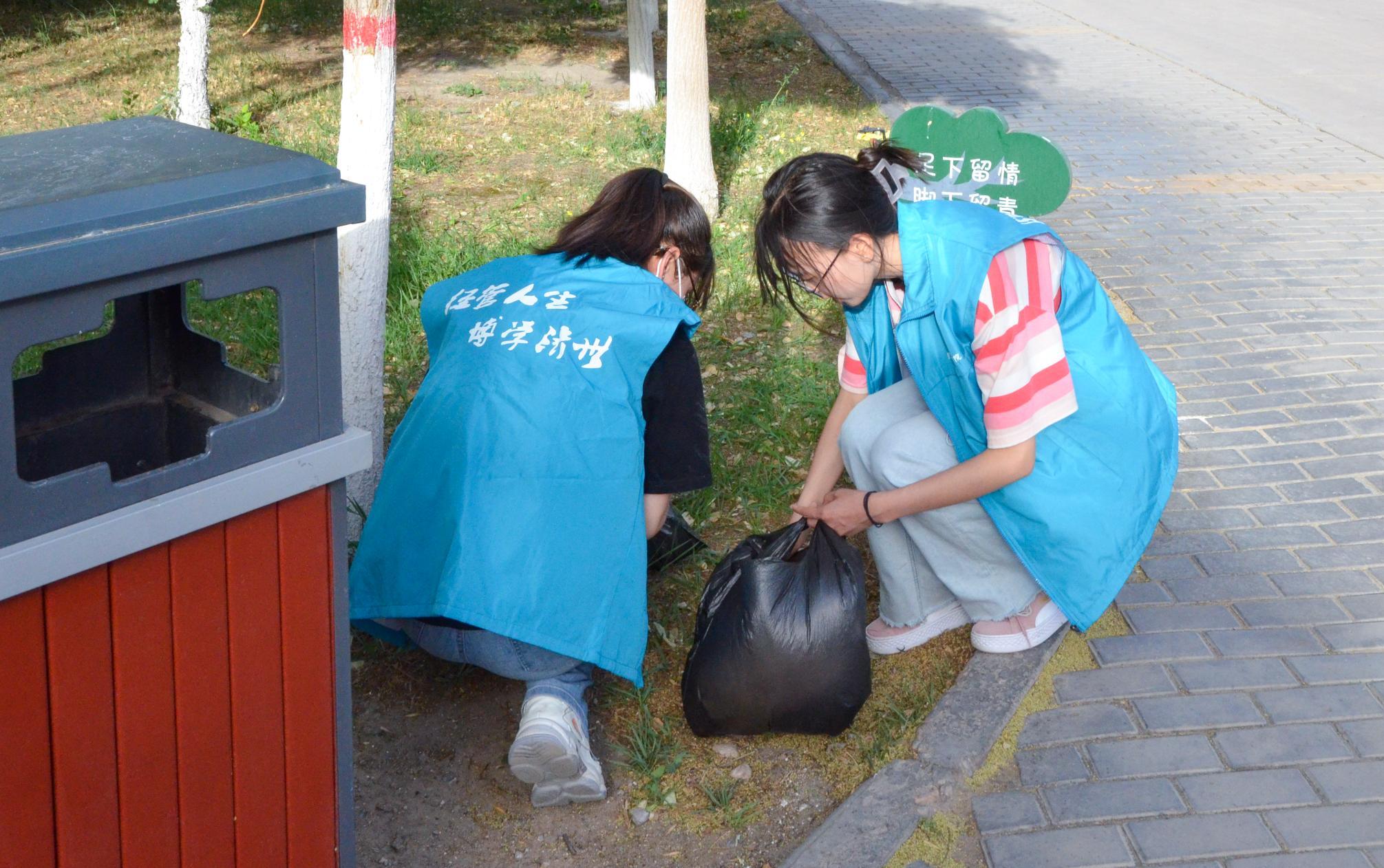 活动中,志愿者们充分发挥榜样示范引领作用,他们手持垃圾袋,分散到校园的各个区域,仔细捡拾路面、墙角边、绿化带等区域的烟头。