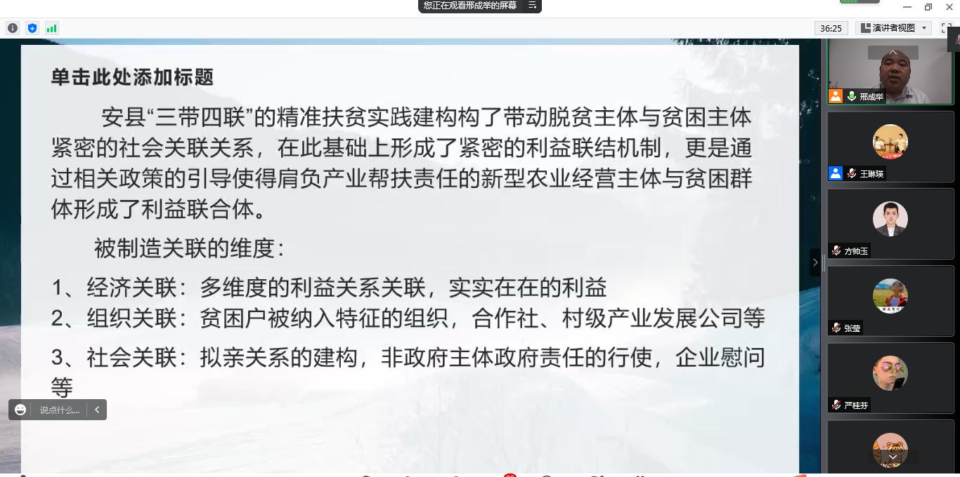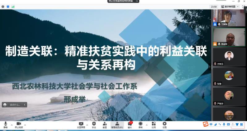 农林经济管理教职工党支部线上举办了“耕读乡村”三农系列讲座第二讲。特邀西北农林科技大学人文社会发展学院副教授,社会学与社会工作系党支部书记,系主任邢成举担任主讲人,报告题目是“制造关联:精准扶贫实践中的利益关联与关系再构”。农学院党委副书记葛志军,91自拍