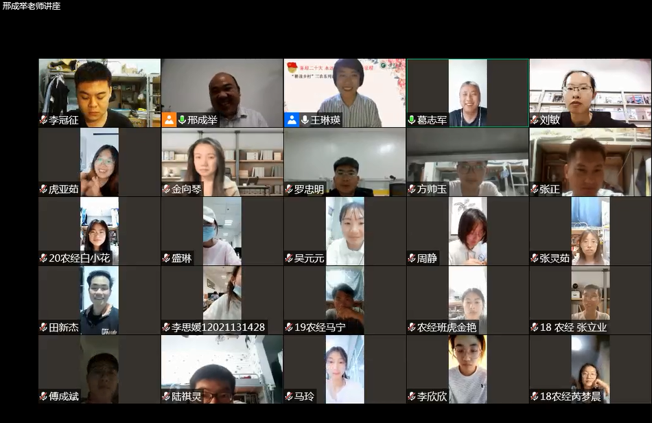 农林经济管理系主任东梅,农经教工党员及研究生、本科生参加了线上学术活动。讲座由农经教工党支部组织委员王琳瑛主持。