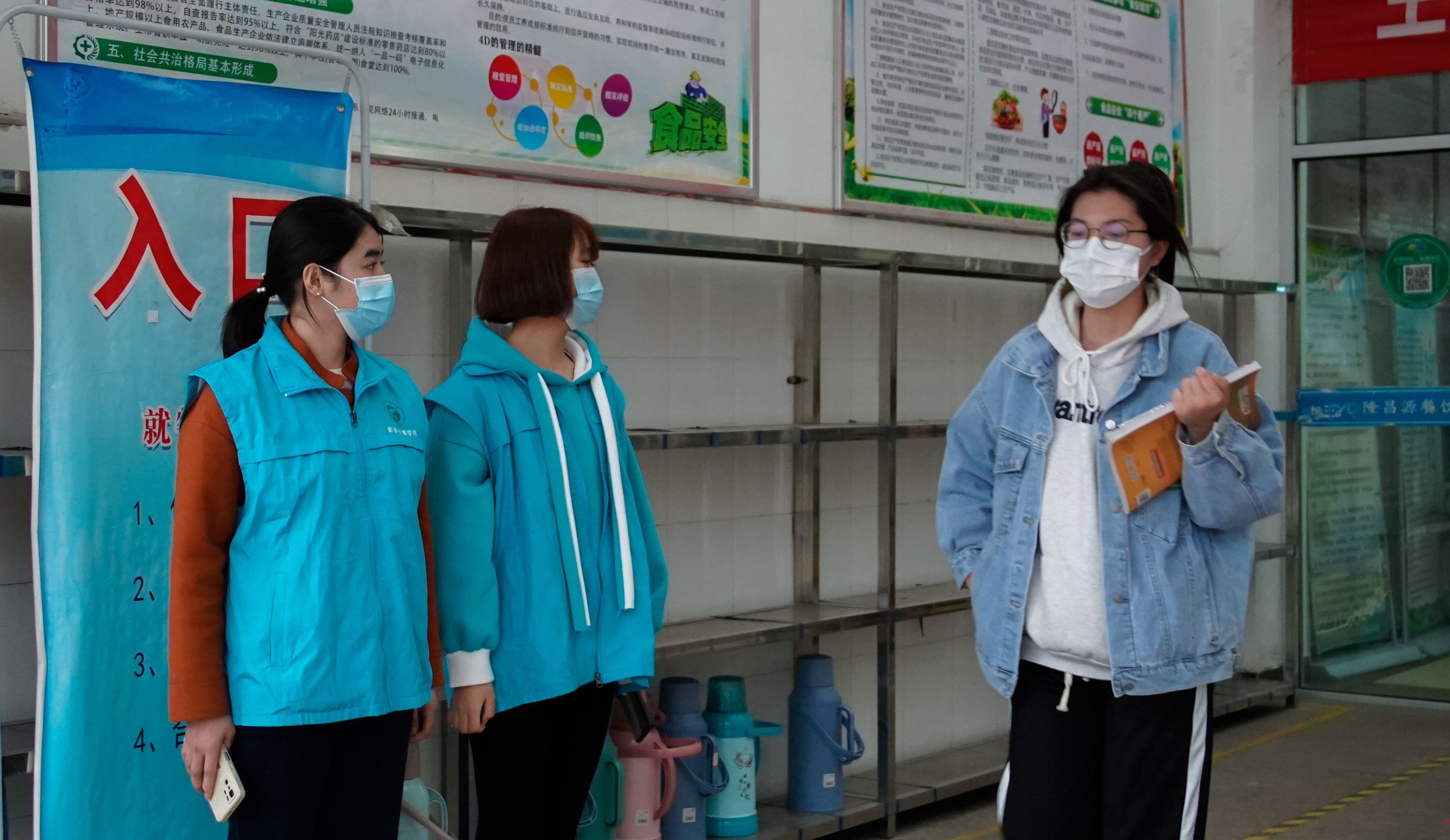 志愿活动中,志愿者响应迅速,同学们认真配合,防疫工作井然有序。志愿者们身着工作服,逐一检查同学们口罩佩戴情况,耐心劝导未佩戴口罩的同学遵守相关防疫规定。