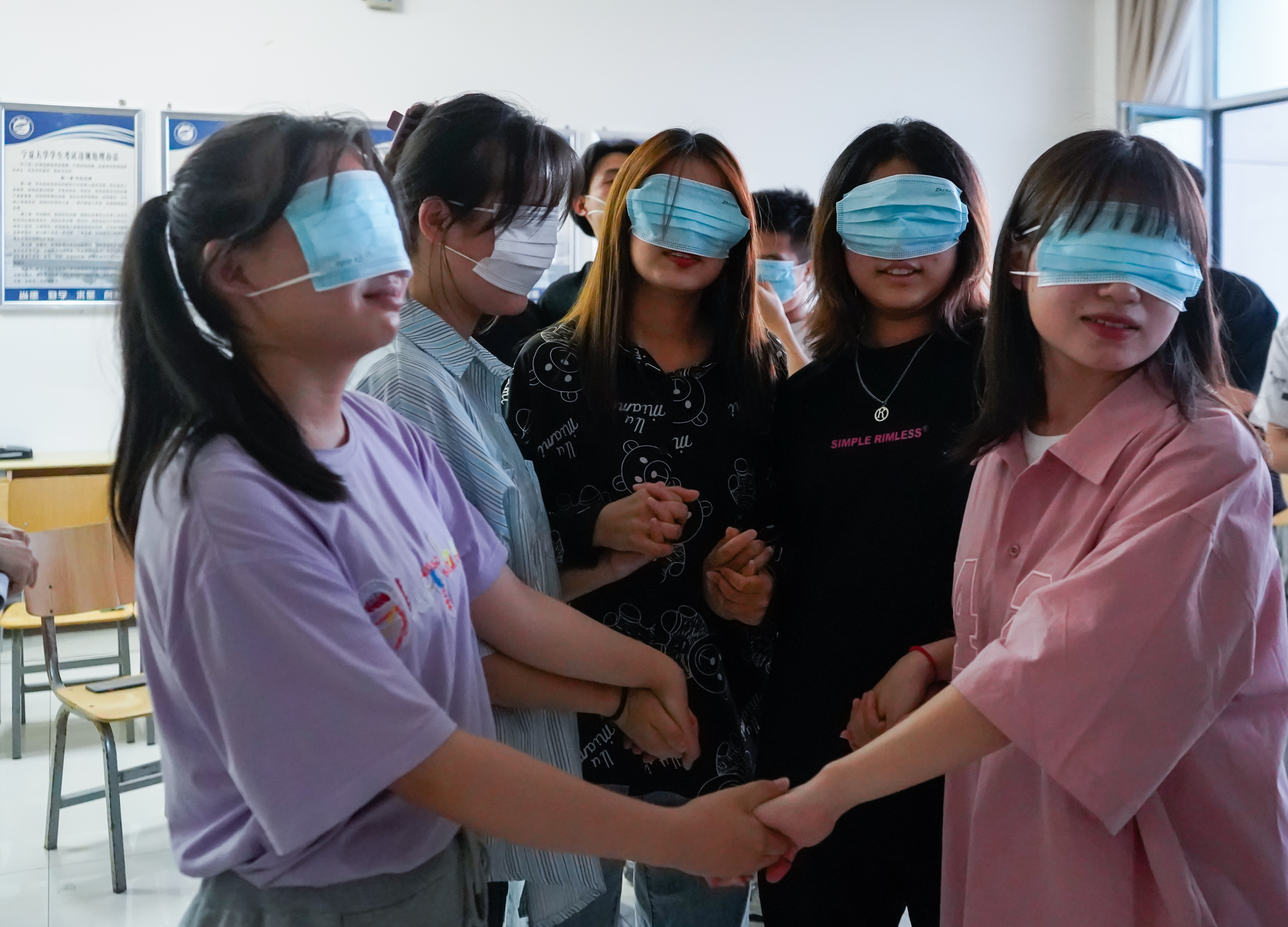 5月23日、24日下午,91自拍 团委志愿者协会在贺兰山校区文荟楼404、418、401、411室和兰山一教D阶101、102、103、104室举行了朋辈心理辅导活动。2021级全体本科生参与了此次活动。