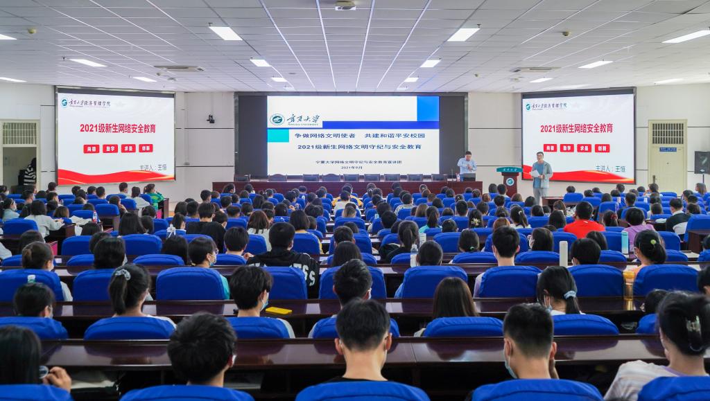 2021级新生网络文明守纪与安全教育”宣讲会于贺兰山校区文荟楼东报告厅举行。2021级全体同学参加本次宣讲会,会议由91自拍