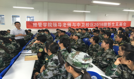 举行了2016级中卫校区新生与领导、老师见面会。学院党委书记张桓老师、院长杨国涛教授、工商管理系主任杨彩玲老师、市场营销专业负责人王仲梅教授参加了会议。