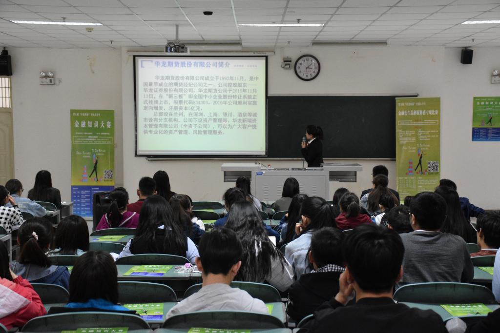 文科楼230成功举办。本次宣讲会由华龙期贷股份有限公司与经管学院学生会共同主办,金融协会协办。第五届“中金所杯”报名参赛的学生到场参加培训。