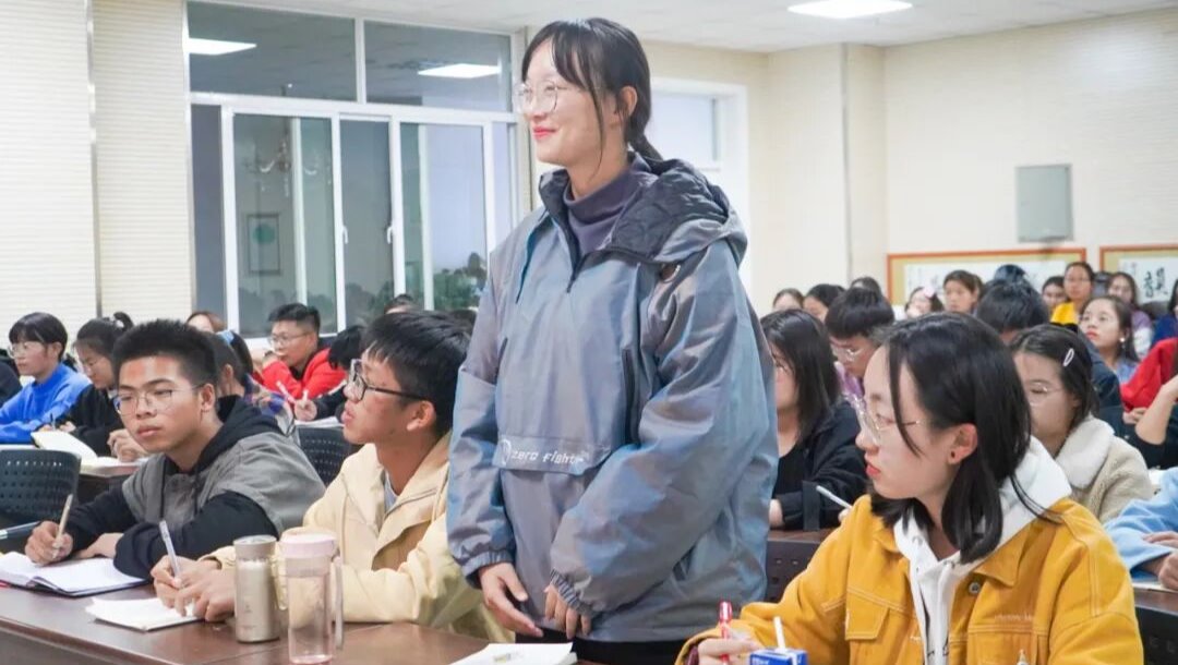 田生宇以习近平总书记向思政课教师提出的“政治要强、情怀要深、思维要新、视野要广、自律要严、人格要正”几个要求入手,引出“教育要培养什么样的人、为谁培养人、怎样培养人”几个问题,引发同学们对当代教育以及个人成长的思考。