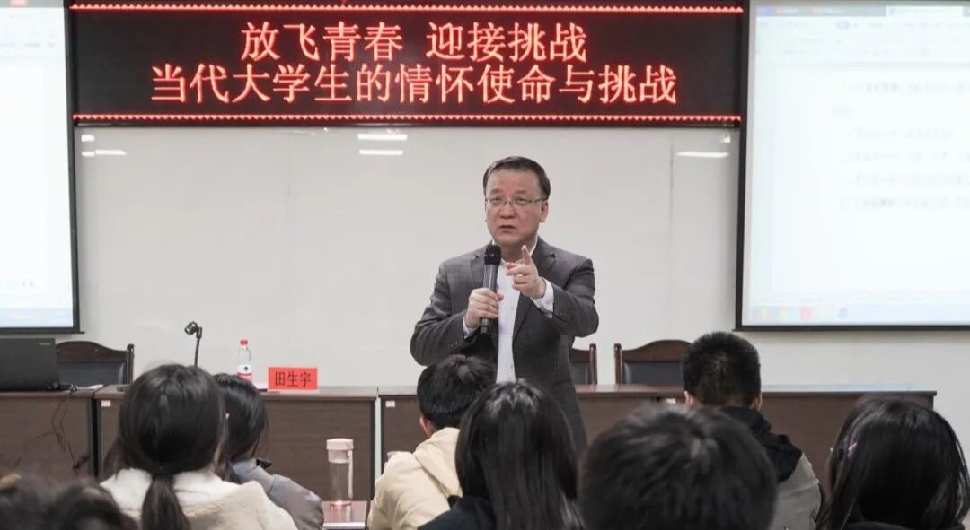 客座教授田生宇老师,在贺兰山校区文荟楼316教室做了“放飞青春,迎接挑战——当代大学生的情怀使命与挑战”的专题报告。学院领导、老师程胜利、何韶华及十三期青马班全体学员参与本次课程,报告由程胜利主持。