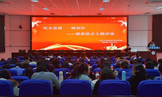 于贺兰山校区文荟楼东报告厅举行了感恩励志主题讲座。本次讲座由学生工作办公室主任黄旭兴主讲。