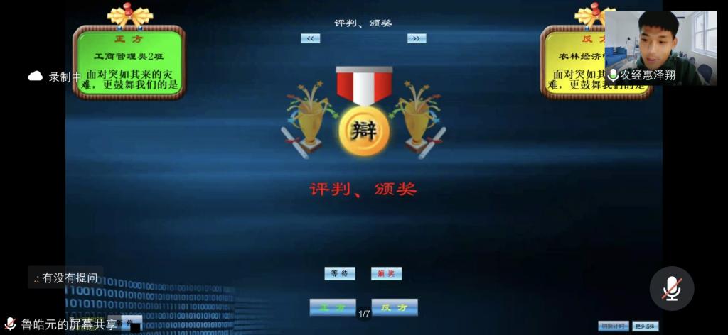 辩论队在线上举办了2021级新生线上辩论赛半决赛。