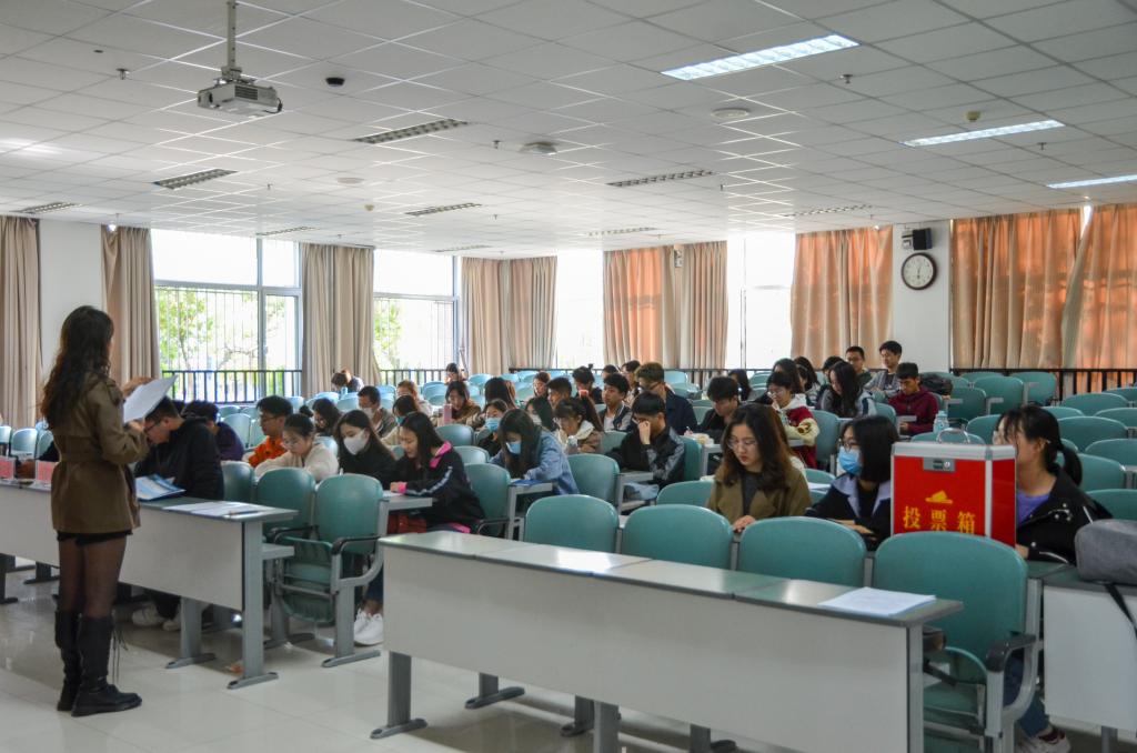 会议伊始,李炜作此次工作述职报告。她提出述职的主题为“不忘初心跟党走,牢记使命有担当,高扬改革旗帜,为学生组织建设奉献力量。”并从三方面进行详细述职:高扬改革旗帜;优化组织体系,建立完整的学校、学院、班级三级联动的工作格局;改革运行机制。李炜讲到,回首过去,我们思想引领,锐意进取;展望未来,不忘初心;抓好落实,实事求是。工作述职报告结束之后,由第十七届学生委员会委员对新一届学生执行主席进行投票,最终选举曾理鸿为第十七届学生会执行主席,李炜、杨宝华为第十七届学生会主席团成员。