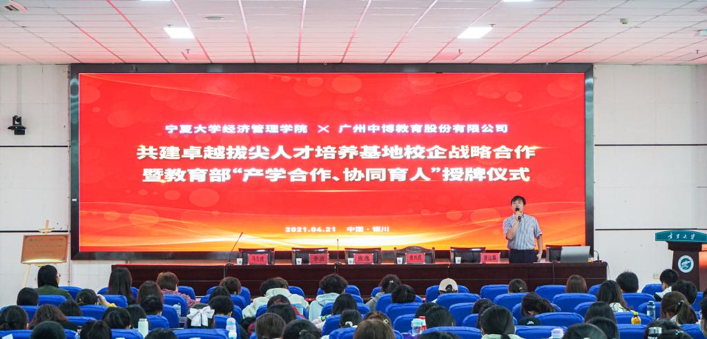 拥有雄厚的师资力量并培养出了许多优秀人才,学院始终坚持开放办学理念,与全国各地的多个高校建立密切合作关系,与中博教育集团合作是学院悉心考量的结果。张逸预祝双方的合作取得圆满成功,希望双方共同努力,形成良性循环的长期合作机制。李波则立足学生群体,希望本次合作能开拓同学们的视野,增加同学们对国际财会的认识。随后,张逸和李波分别代表学院与集团进行签约,举行了教育部“产学合作,协同育人”授牌仪式并进行合影留念。
