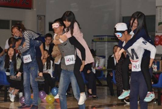 活动由两位新疆姑娘带来的纯正优美的舞蹈拉开帷幕。紧接着,激动人心的联谊活动开始,男生首先选择戴面具的心仪女生,引起了观众的阵阵欢呼,尖叫声一片。随后,爱情对对碰游戏由男女双方共同协作爆破气球,增进了男女双方的沟通与协作能力,同时活跃了现场的气氛。之后,活动期间评选出来的优秀作品生动地呈现在大家面前,精心布置的宿舍,一张张自信的笑容充分体现了同学们积极向上的生活态度。活动过程中穿插进行了爱情大作战、心有灵犀、爆破小能手及才艺表演等小游戏,不仅让观众持续保持对活动浓郁的兴趣,也使得活动井然有序的进行。最吸引观众眼球的“才艺表演”游戏,男生扮演“瞎子”,女生扮“瘸子”,女生为男生指引路,绕过路障达到终点,使整场活动精彩不断,高潮迭起,赢得了大家的掌声。最后,欢乐宿舍活动在美妙的音乐声中完美落幕。