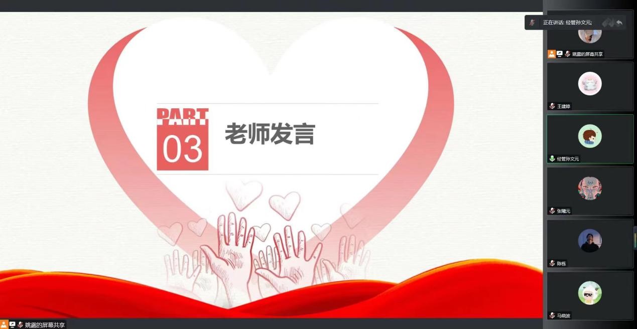 2020级各班陆续召开了“一起向未来”线上主题班会。学生办公室辅导员孙文元、2020级各班班主任、2020级全体本科生参加并开展了本次系列主题班会。会议由各班班长主持。