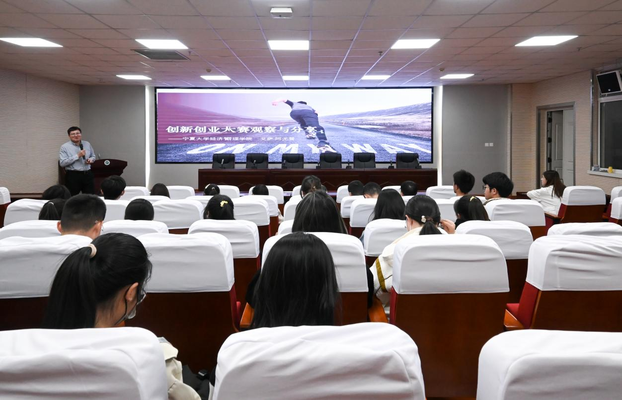 (西部发展研究院)“我敢闯 我会创”创新创业类赛事系列讲座于贺兰山校区文荟楼316会议室顺利举行。该讲座邀请艾萨·阿尤普、禹文杰老师,2020级金融学专业学生禹尧康讲解。