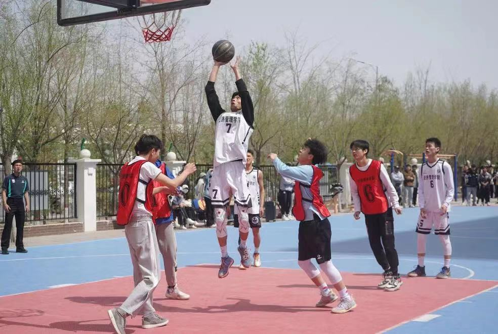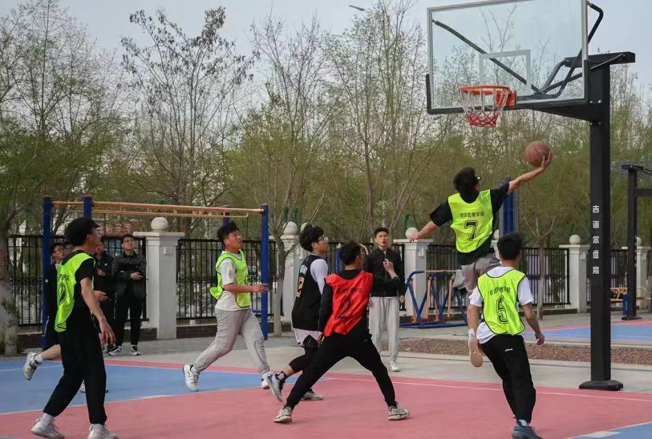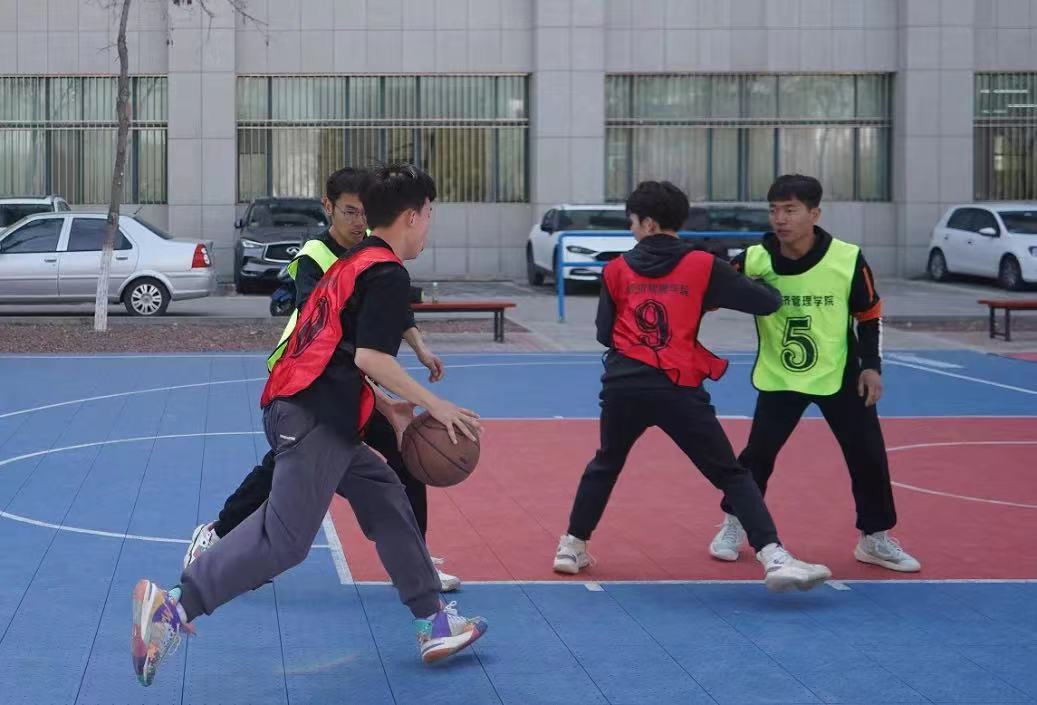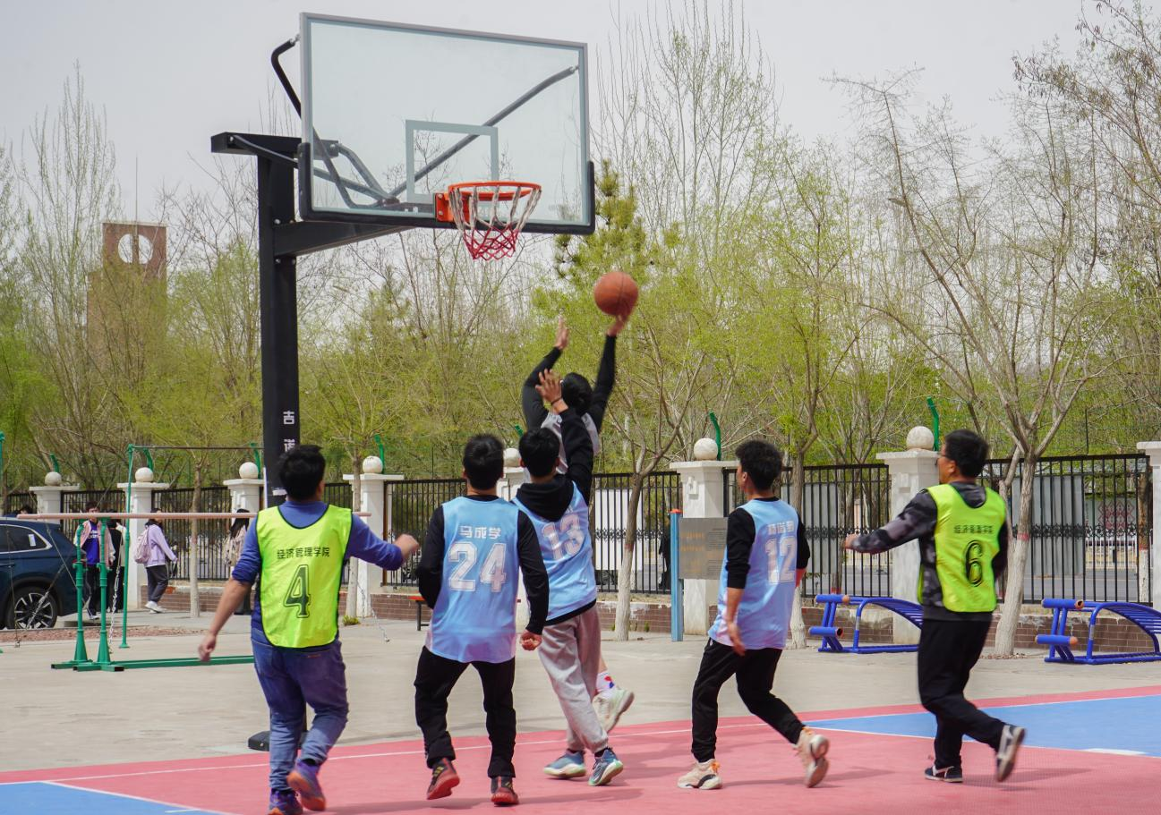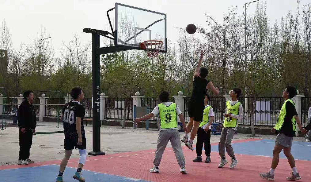“经春杯”最后一轮篮球小组赛在贺兰山校区篮球场顺利举行。