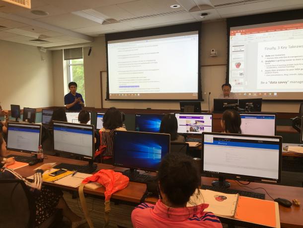 在26日下午的课程中,商学院Ph.D Bongsug Chae教授讲授数据分析的课程,通过数据的概念引入数据分析的重要性。应用谷歌公共数据、Tableau软件展示了多维分析和可视化功能。Ph.D Bongsug Chae强调数据分析在职业生涯的发展中会发挥重要作用,数据分析硕士教育也应纳入大学课程体系设计中。