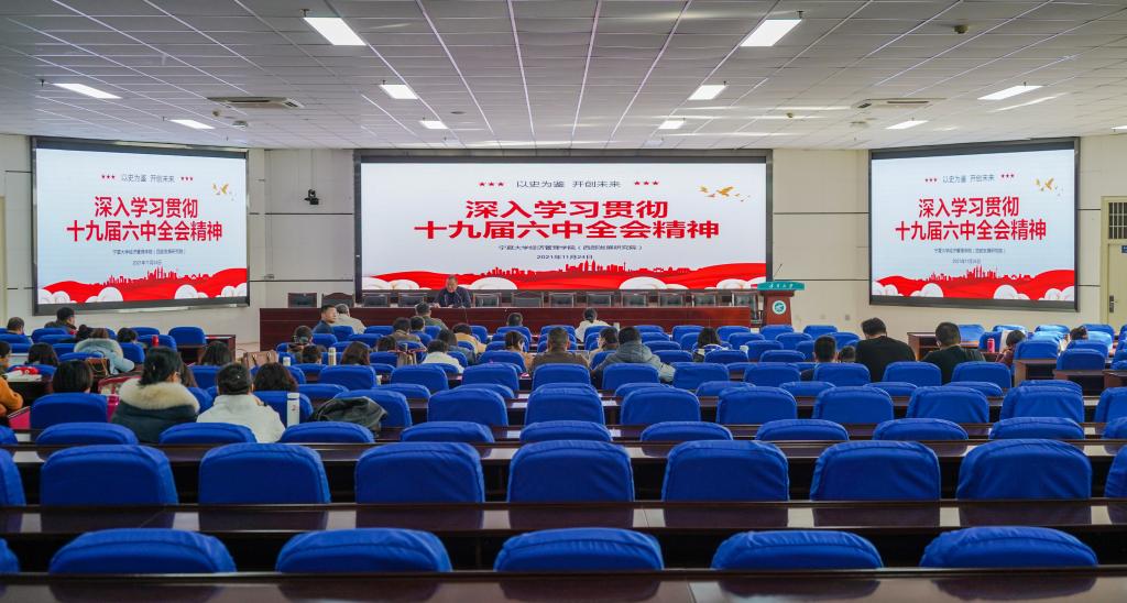 在贺兰山校区文荟楼东报告厅举行十九届六中全会的专题学习会。91自拍