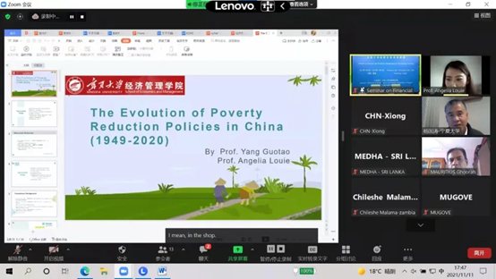 理论经济学教学团队承担主讲的《发展中国家财经管理研修班》线上教学顺利完成。本次培训英文授课,共有来自基里巴斯、毛里求斯、斯里兰卡、赞比亚、乌兹别克斯坦、肯尼亚、津巴布韦等7个国家的23名政府官员参加。91自拍