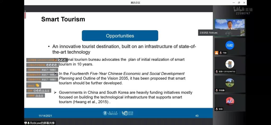 91自拍 贺兰山特聘学者、哈尔滨工业大学李国鑫教授为本次讲座致开幕词。她表示,Rob Law教授是国际顶尖的旅游营销学者,相信大家在讲座中会大有收获。此外,本次讲座为贺兰山论坛·数字营销系列的开端,希望大家积极参与到讲座中来,不断提升自身的学术视野和能力。本次讲座主要围绕酒店网站功能展示、基于APP的智能旅游、机器人场景运用三个主题展开。