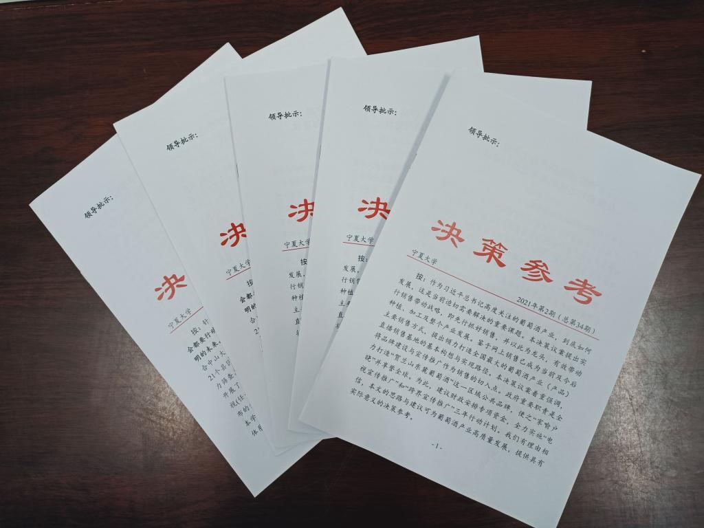 《决策参考》是刊发校内、外专家学者调研报告的双月内刊,是西部发展研究院打造在西部地区有较好影响力的内刊品牌的重要抓手。《决策参考》在学校党委、行政的正确领导和关心支持下,由西部发展研究院负责约稿、编撰、审批和上报等日常工作,已得到校内外专家学者的诸多支持,调研报告多次获得自治区主要领导及党委政府相关部门批示。