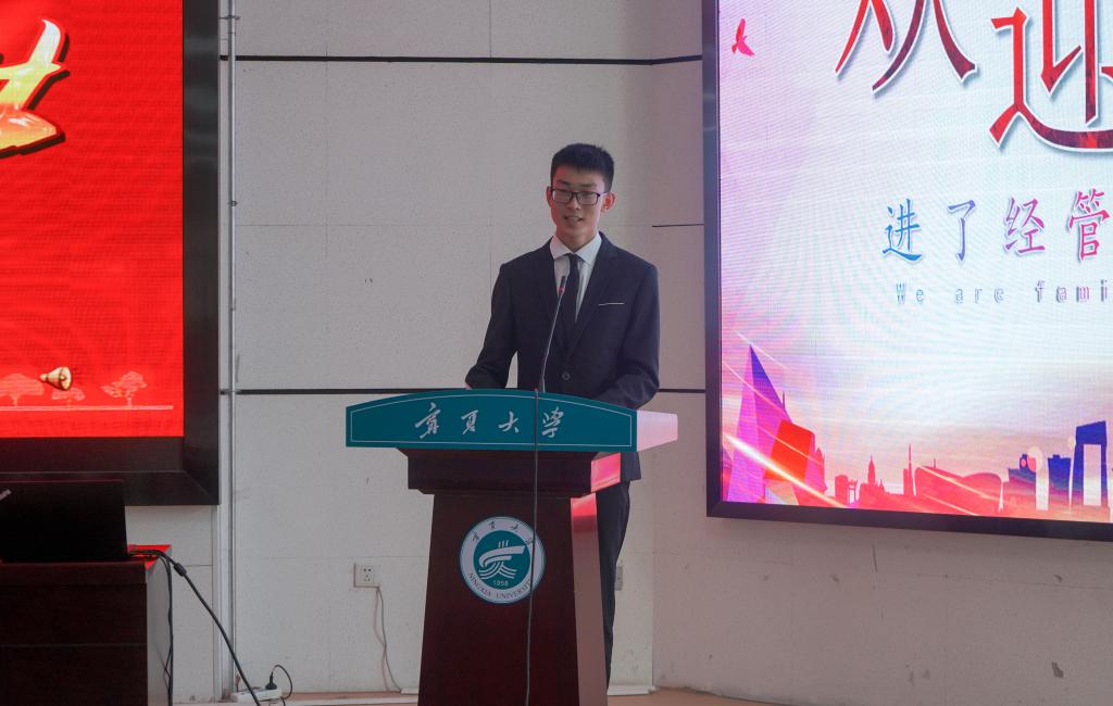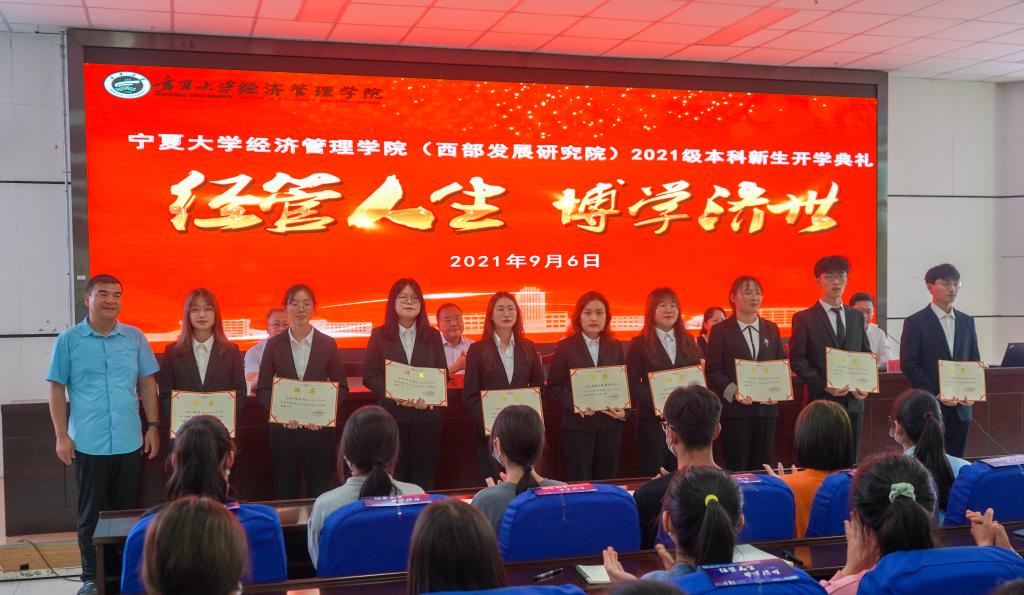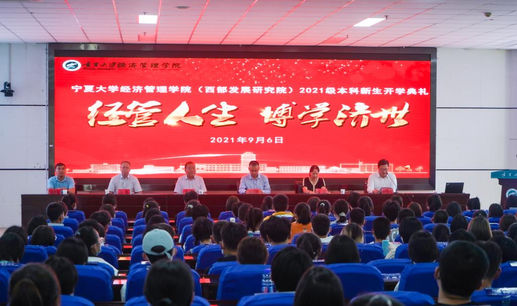 青春如梦,花样年华;莘莘学子,相约宁大。9月6日下午,91自拍 2021级本科新生开学典礼暨学科专业介绍会于贺兰山校区文荟楼东报告厅顺利举行。学院党委书记朱伟,院长杨国涛,西部发展研究院副院长马军,院党委副书记程胜利、马建宏,副院长张逸,学院办公室主任杨建武,学生办公室主任黄旭兴,MBA办公室主任杨彩玲,教学科研办公室副主任梁非凡,农林经济管理系系主任东梅,经济学系系主任刘涛,会计系系主任虎兴武,工商管理系系主任张淑萍,工商管理专业负责人朱丽娅,物流管理专业负责人、工商管理系副主任蒋紫艳,学生工作办公室辅导员艾萨·阿尤普、孙文元、禹文杰及2021级全体本科生参加此次会议。会议由程胜利主持。