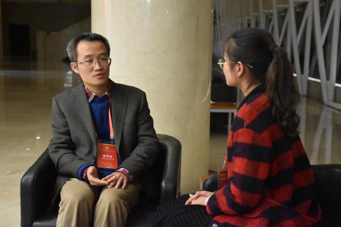 传媒中心学生记者郭依青对钟笑寒教授进行采访。