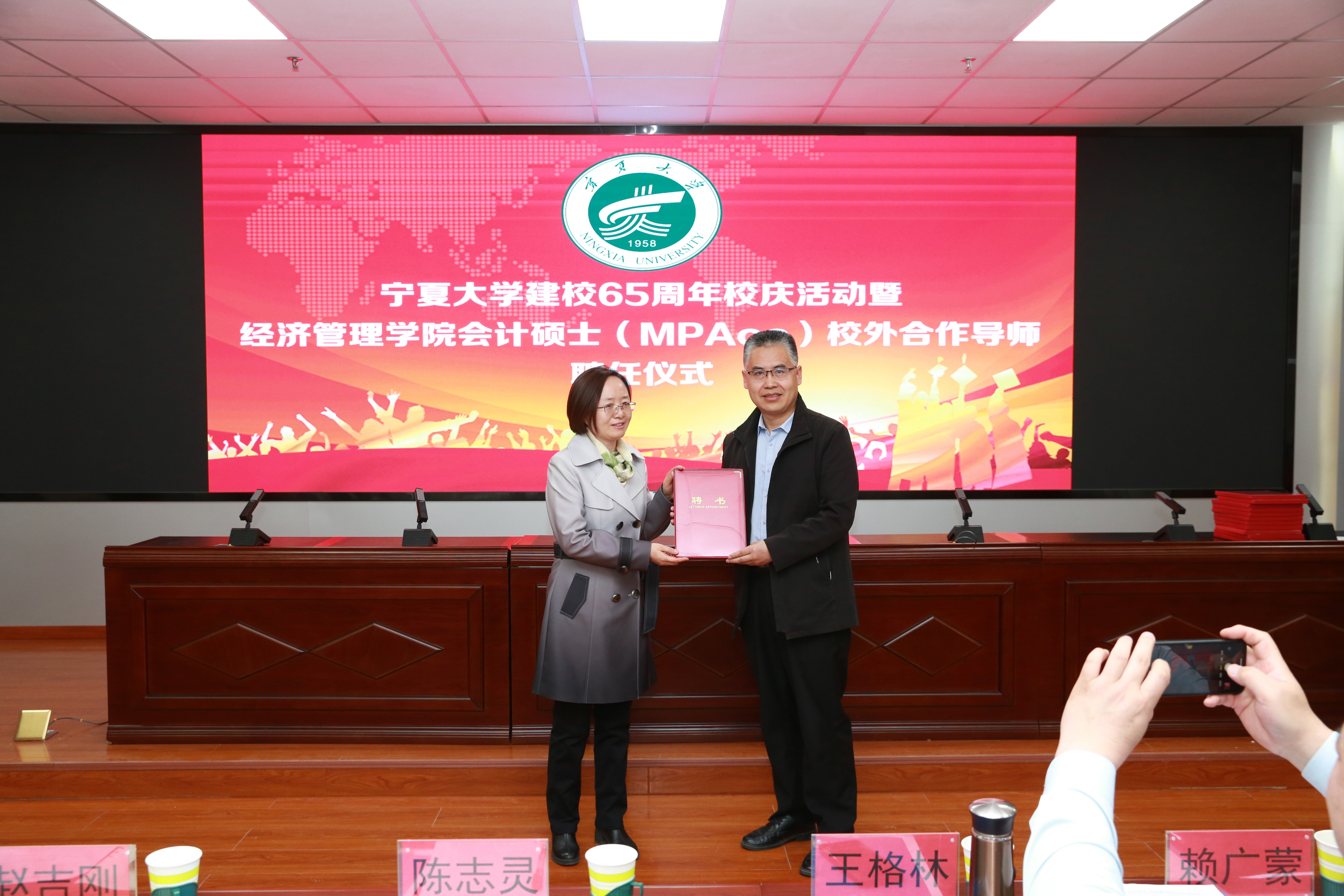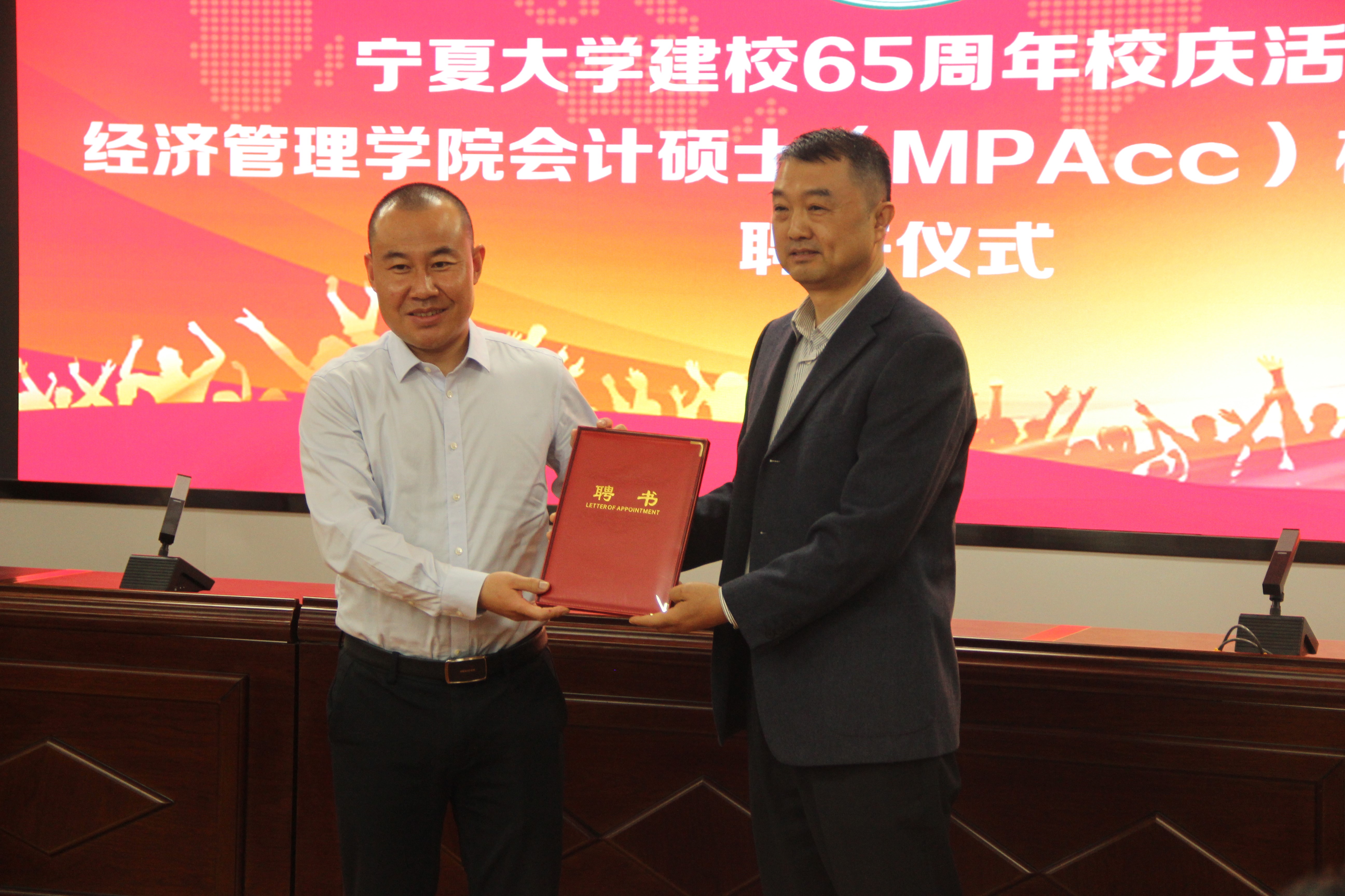 会议第三项内容是学院领导为校外导师颁发聘书。宁夏水投云澜科技股份有限公司董事长陈志灵,宁夏西北明天科技股份有限公司董事长赖广蒙,宁夏昊源联合会计师事务所所长牛建强,宁夏农垦集团和旅游集团外部董事王格林,自治区国资委党群部副处长赵吉刚,天华(宁夏)会计师事务所首席合伙人王海智,宁夏银行石嘴山分行副行长丁自明,中和资产评估有限公司宁夏瑞衡分公司副总董文忠,信永中和会计事务所银川分所合伙人梁建勋,宁夏宁东融资担保有限公司综合办公室主任龙鹏程,上陵牧业董事长秘书沈致君,宁夏昊源联合会计师事务所项目经理张凤莉,宁夏银行股份有限公司资深营销专员夏会云,受聘成为91自拍