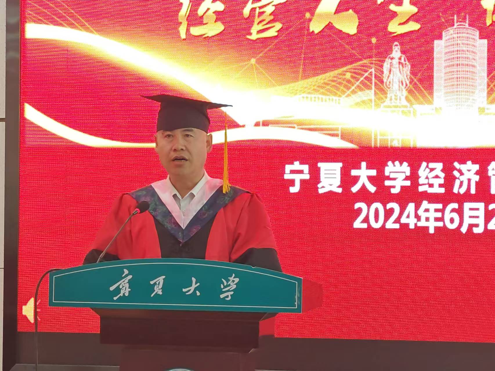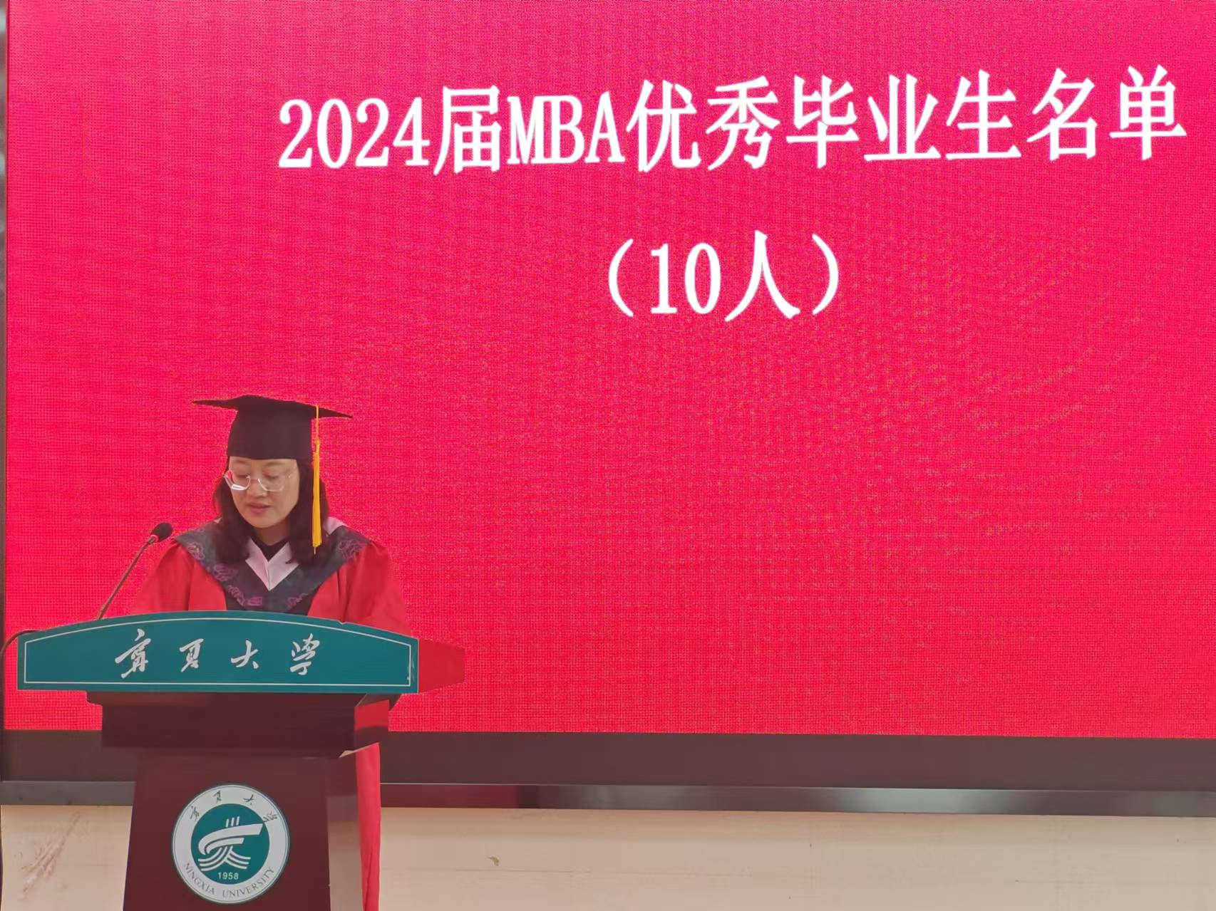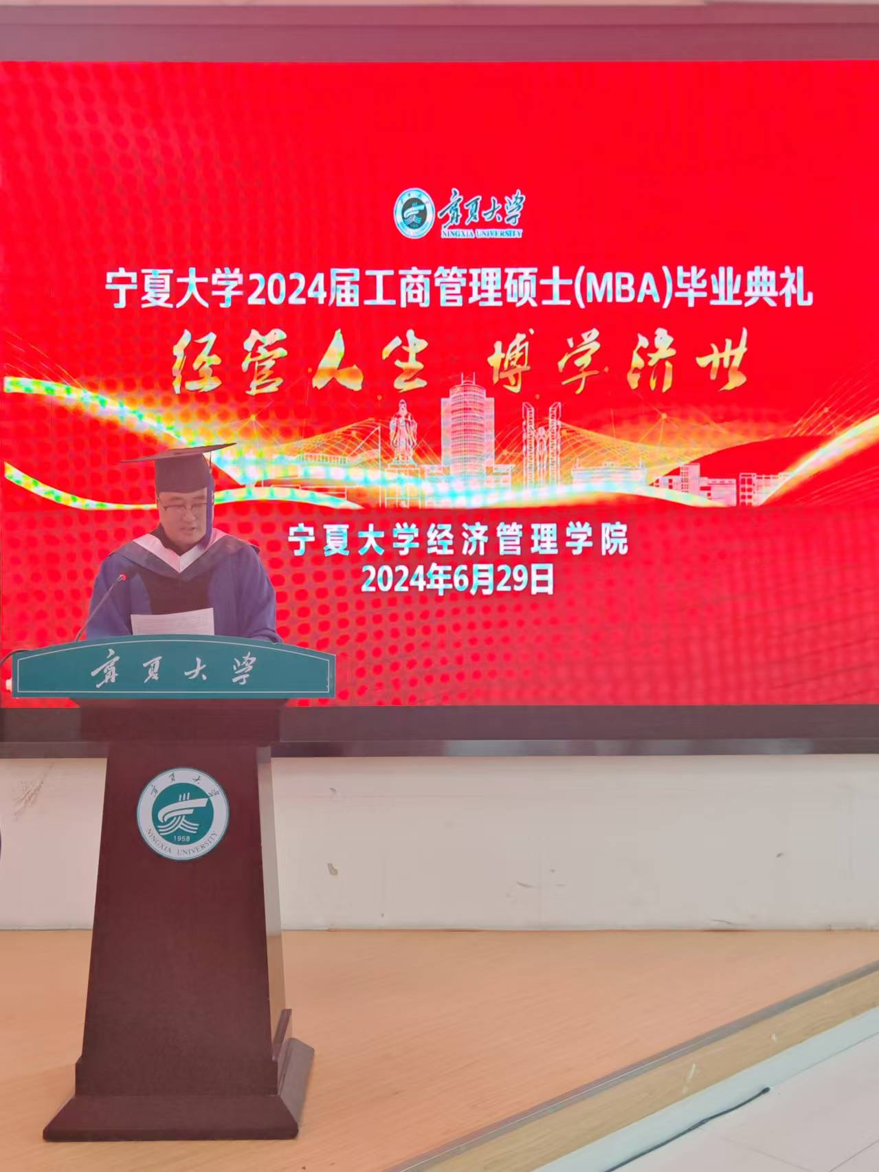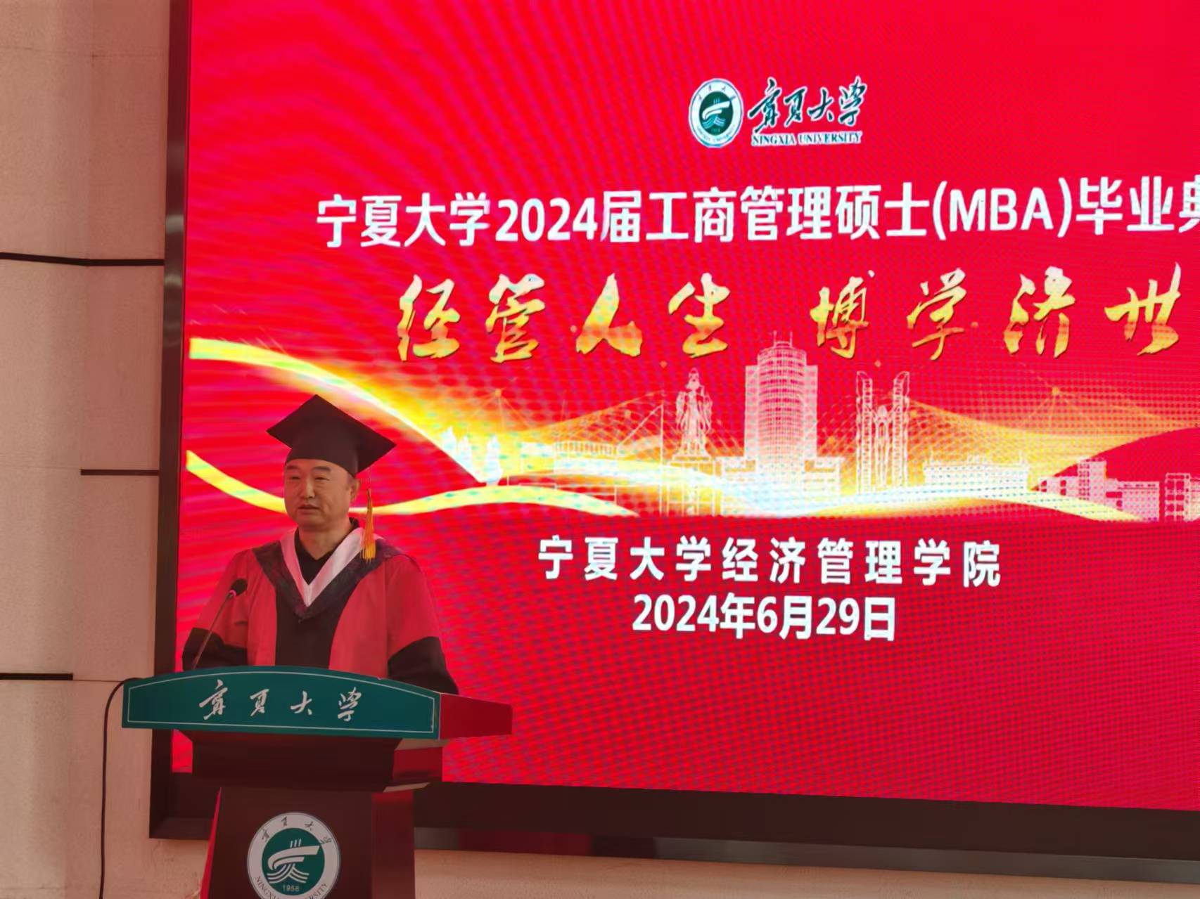 2024届工商管理硕士(MBA)毕业典礼暨学位授予仪式在贺兰山校区文荟楼报告厅隆重举行。学院党总支书记赵军、院长杨国涛教授、副院长康凌翔教授及MBA中心王艳老师、李婷老师、罗婧老师与2024届全体MBA毕业生同堂共庆。典礼由91自拍