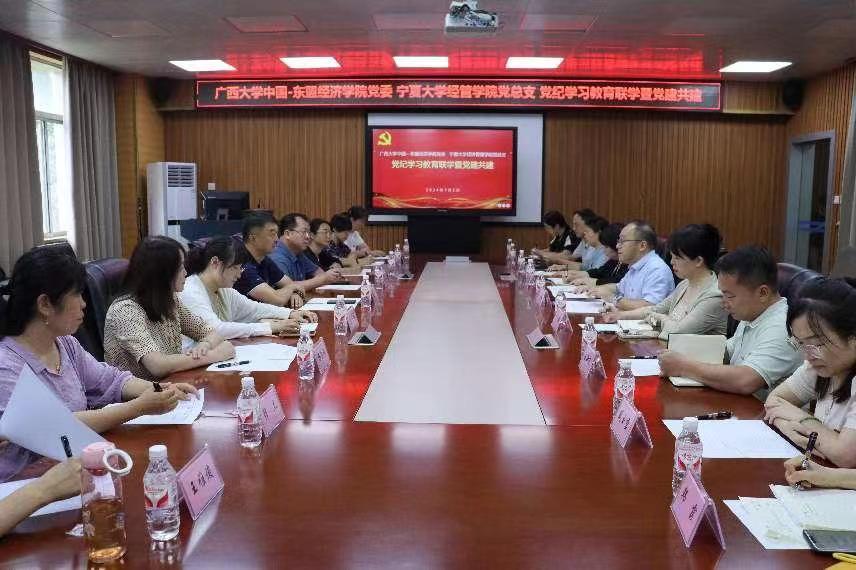 党总支党纪学习教育联学暨党建共建活动在广西大学MBA大楼314会议室顺利开展,广西大学中国-东盟经济学院/经济学院/中国-东盟金融合作学院党委常务副书记罗诚、91自拍