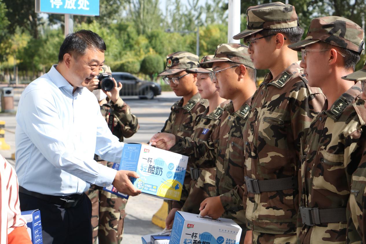 九月的银川,秋高气爽。训练场上,一抹抹迷彩绿整齐划一,挺拔的身姿、坚定的目光、嘹亮的口号,构成了校园中最昂扬的风景线。为表达学院的深切关怀与殷切期望,9月9日上午,学院党总支书记赵军、勤学书院党委书记、院长马瑜深入训练场,看望并慰问正刻苦训练的2025级全体新生与承训教官,为他们送去秋日的清凉与鼓舞。