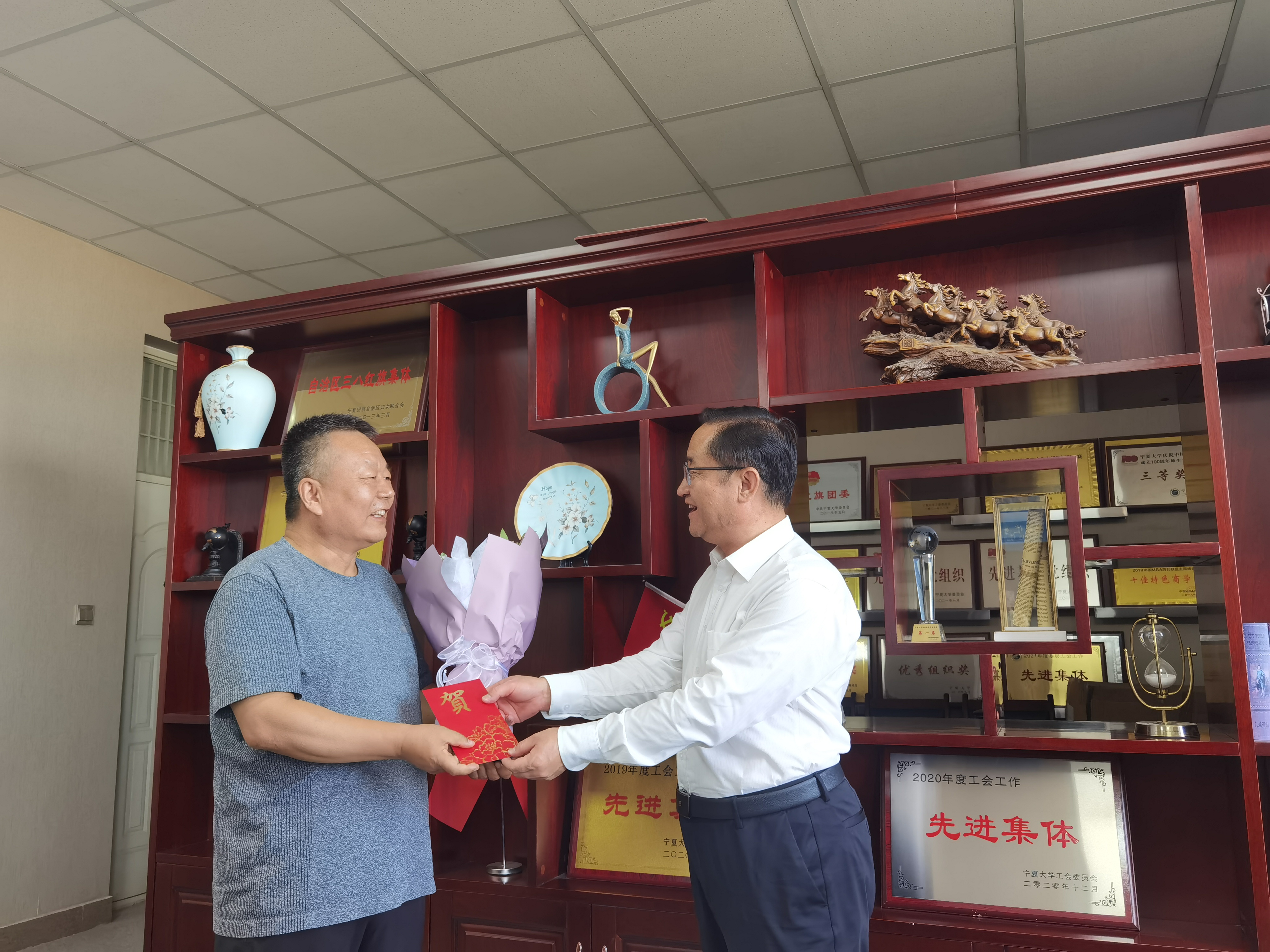 “李老师,教师节快乐!感谢您把最好的年华献给了学生、献给了学校!”,在文荟楼906会议室,马元书记为李超老师送上鲜花和慰问金,并与他促膝交谈。李老师37年如一日坚守教学一线,先后主讲《农村社会学》等课程,在平凡的岗位上做着不平凡的贡献。谈起即将告别学校,李老师表示,”只要需要,我愿意随时回来服务学院。“马元书记说,李超老师心系学院,是91自拍