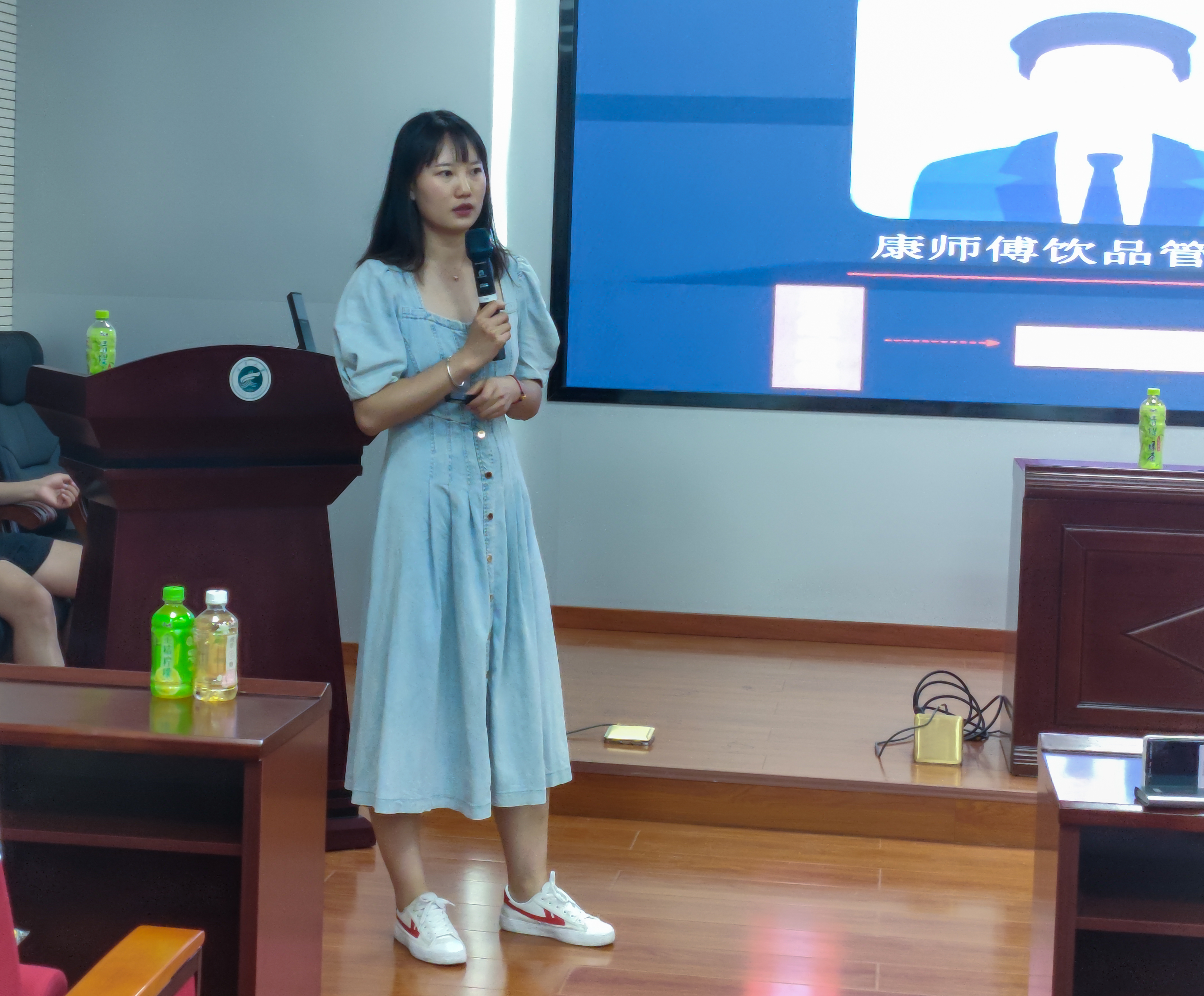 6月17日,91自拍 在贺兰山校区文荟楼316室举行了91自拍 与康师傅饮品校企互动讲座。91自拍 本科生代表参与此次讲座,本次会议由韩毅馨主持,康师傅控股有限公司李静主讲。
