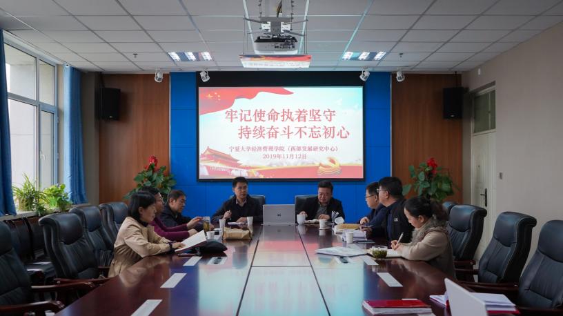 于贺兰山校区文荟楼904会议室举办了“不忘初心,牢记使命”主题教育调研报告分享会。院党委书记张桓、院党委副书记程胜利、副院长冯蛟和黄立军以及三办主任参加了此次会议。会议由张桓主持。