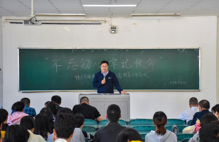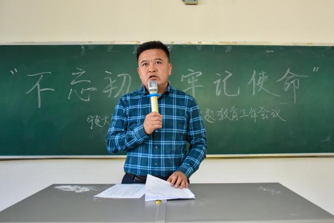 (西部发展研究中心)于贺兰山校区文荟楼130室召开了“不忘初心、牢记使命”主题教育工作会议。学院党委书记张桓,党委副书记程胜利,党委副书记李琦及学院全体教师党员、学生党员到场参加。会议由程胜利主持。