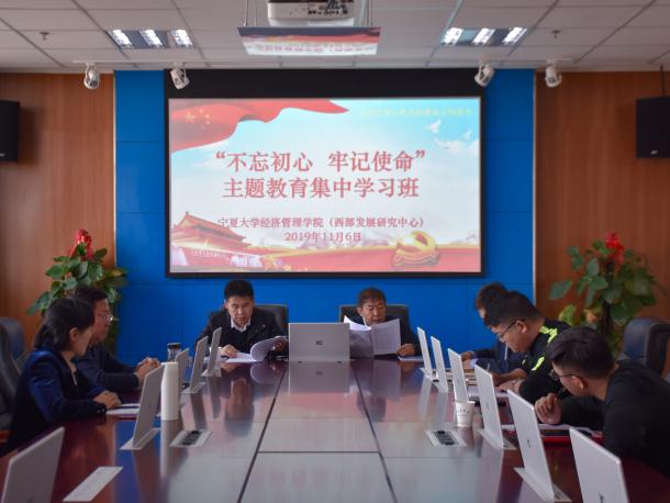 (西部发展研究中心)“不忘初心,牢记使命”主题教育集中学习班于贺兰山校区文荟楼904会议室组织集中学习,学院副处级以上领导干部到场参与学习。