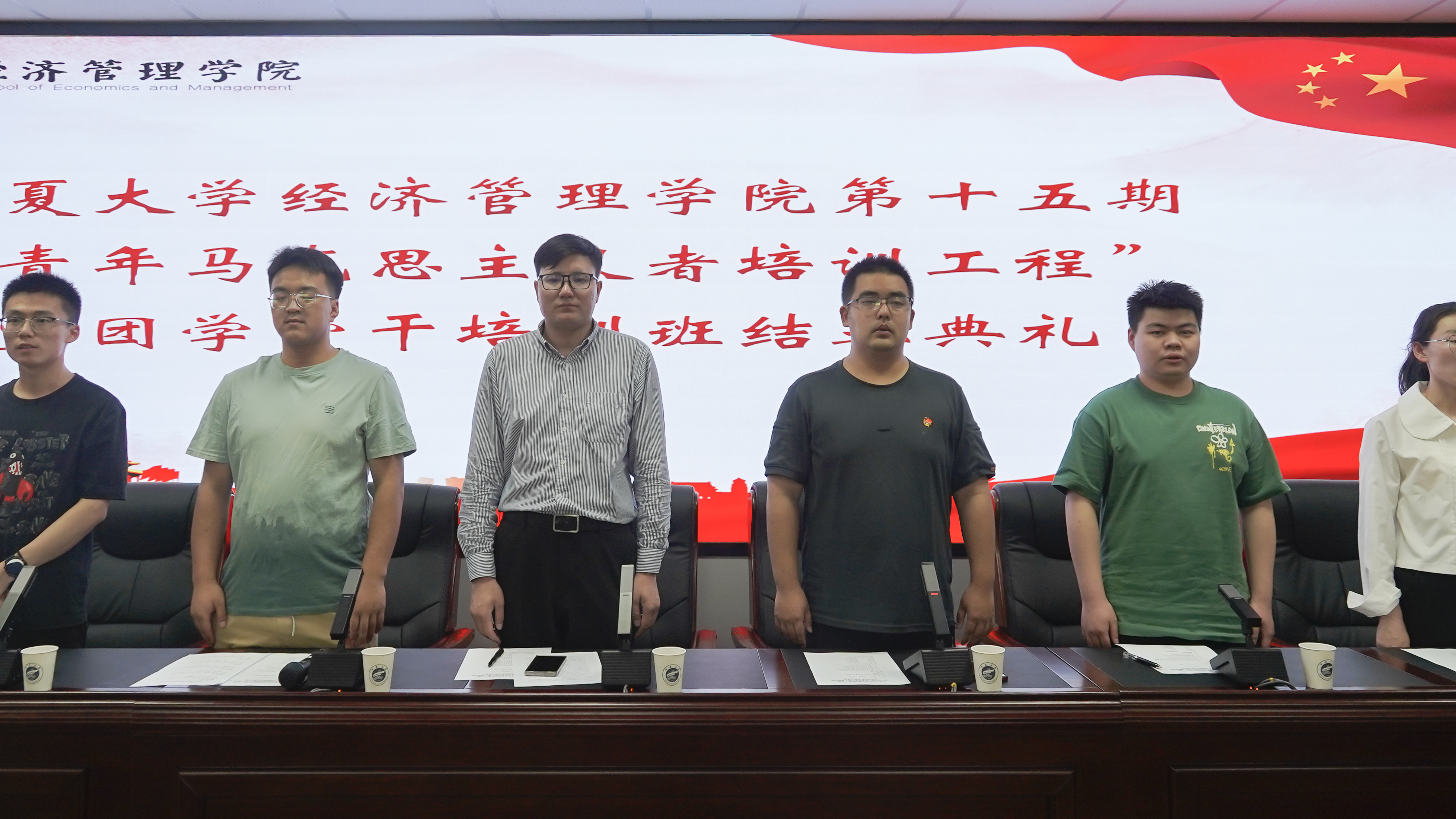 结业典礼在共青团团歌声中拉开了序幕。柳虎威宣读了第十五期青马班优秀学员及优秀小组名单。孙文元为优秀结业学员以及优秀结业小组颁发了证书。优秀学员黄定旺做了获奖感言。