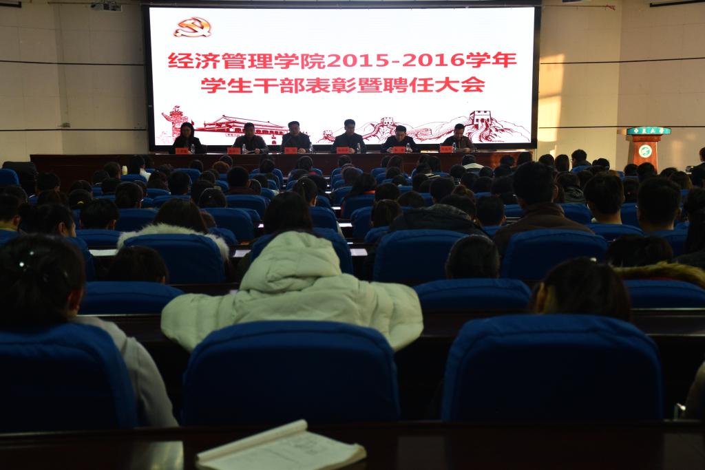 在文科楼东报告厅召开2015-2016学年表彰大会暨聘任大会。学院党委书记张桓、院长杨国涛、党委副书记桂晓兵、党委副书记李琦及学生工作办公室王嘉豫老师出席本次会议,本次会议由学生工作办公室主任黄旭兴主持。91自拍