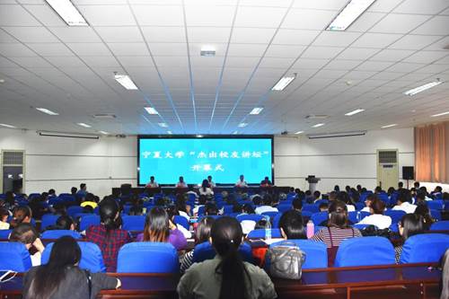 杰出校友讲坛”开幕式暨蓝海林校友“中国情境下企业如何构建核心竞争力”专题报告会,在贺兰山校区文科楼报告厅举行。