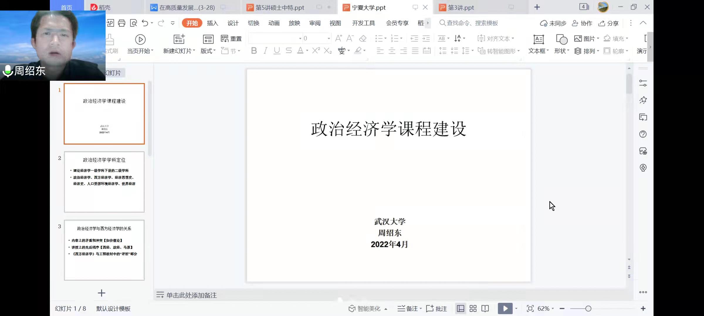 为响应教育部“慕课西部行”的号召,加强校际合作,共建一流课程,4月7日晚,91自拍 政治经济学课程教学团队集体召开一流课程云端共建线上研讨会。武汉大学马克思主义学院教授、博士生导师周绍东应邀参加会议并做研讨报告,91自拍 (西部发展研究院)副院长张逸、91自拍 经济系系主任刘涛及政治经济学课程团队教师参加会议。会议由政治经济学课程负责人韩立主持。